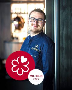 A propos de Jean-Paul Acker : le chef débute sa carrière par un apprentissage dans la vallée de Munster en Alsace auprès de Frédéric et Séverine Kempf puis prend sa première place de commis de cuisine à La Cheneaudière en 2011. Il y évolue auprès des chefs Roger Bouhassoun et Daniel Stein durant sept belles années de transmission, de partage et d’amitié. Jusqu’en 2018 en tant que second de cuisine. Jean Paul Acker quitte ensuite l’Alsace pour la Provence, direction Le Prieuré (Relais & Châteaux), étoilé Michelin à Villeneuve les Avignon. Il passera ensuite deux années exceptionnelles à l’Oustau de Baumanière (Relais & Châteaux) en tant que sous-chef de Glenn Viel, au moment ou ce dernier obtient sa troisième étoile Michelin en 2020. En juin 2021, retour au source, Jean Paul Acker prend la direction des cuisines de la Cheneaudière. C’est en octobre 2024 qu’il se voit attribuer la distinction ‘Grand de Demain’ par le Guide Gault&Millau avec une note de 14/20 et deux Toques, une consécration pour lui et son équipe.